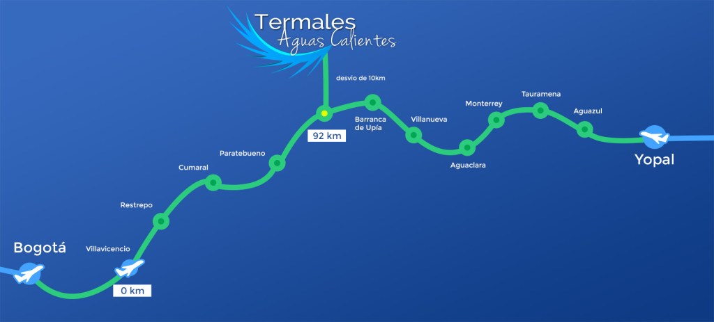 Yopal > Termales: 159km pavimentada + 10km destapada